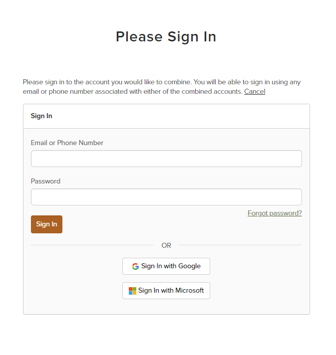 3. Sign in with your other account. This will combine your accounts and allow you to sign in as either.